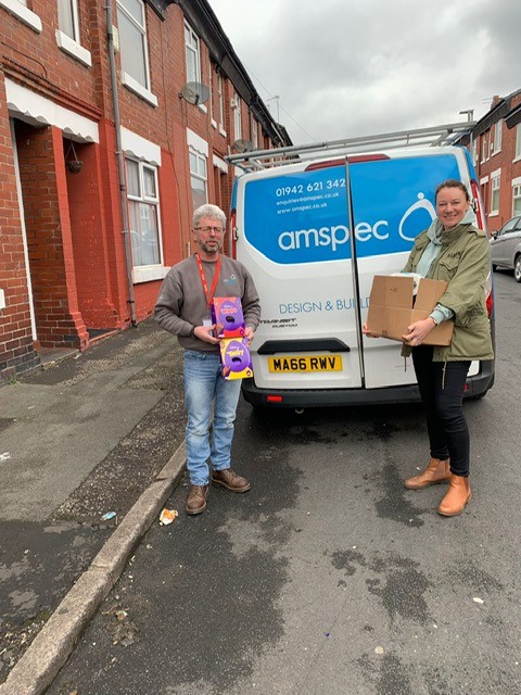 Amspec team up with Manchester Youth Zone Charity deliver care packages for families in need this Easter