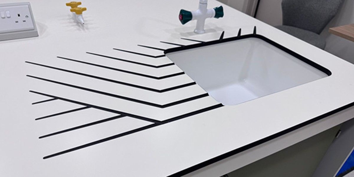 Our bespoke branded sinks are a unique, functional addition to any laboratory environment - designed to combine durability with custom identity. Manufactured using high-quality Trespa and chemically resistant epoxy finishes, each sink is built to withstand the demands of lab work while offering a refined, professional appearance.