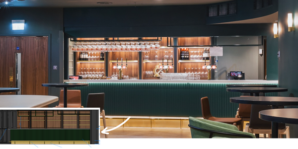 Constructed using moisture-resistant MFC with PerfectSense finishes, the bar combines visual appeal with practicality. The surfaces are smooth, durable and easy to maintain making them ideal for high-traffic hospitality environments. Subtle lighting, clean lines and premium materials all contribute to a sleek, contemporary look.