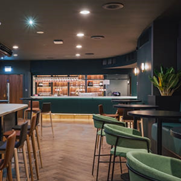 Combining durability with premium aesthetics, this bespoke bar features striking teal finishes that give the space a luxurious, high-end feel - perfectly suited to the exclusive atmosphere of matchday hospitality. The colour palette was carefully selected to complement the overall interior scheme, though it can be fully tailored to suit any brand, venue or design concept.