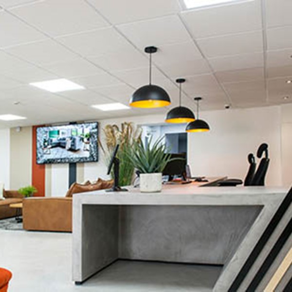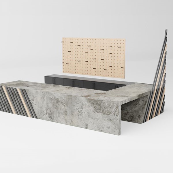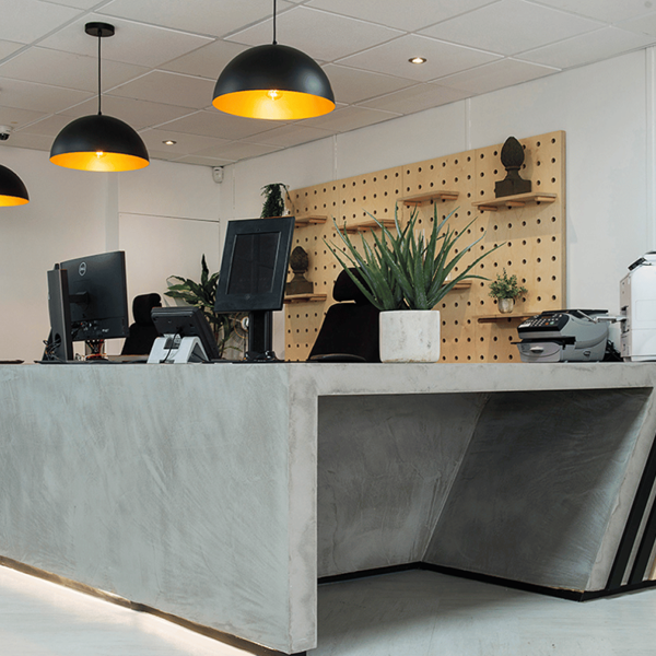 Designed to be the standout feature of any reception area, this bespoke industrial-style desk is made using durable Microcement for a bold, concrete-effect finish. DDA-compliant and built with functionality in mind, the desk brings a raw, monochromatic aesthetic that acts as a neutral canvas - perfect for evolving interiors and brand updates.