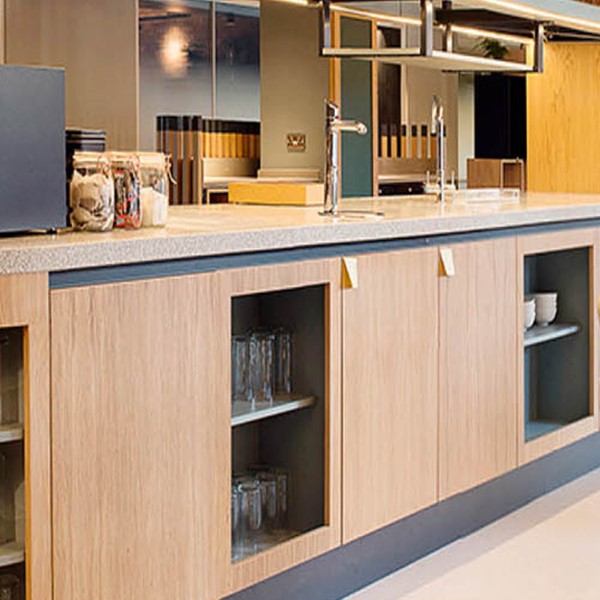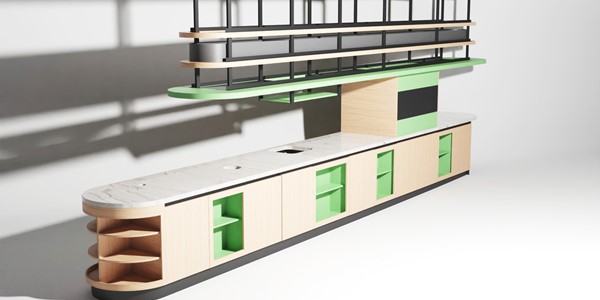 Ideal for collaborative offices, social hubs or breakout spaces, this feature kitchen can be tailored in any material, size or finish to complement your brand and environment.