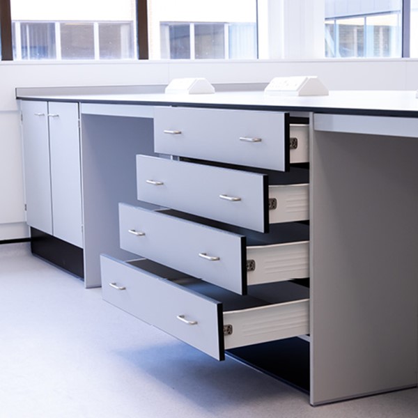 Fully customisable, our storage solutions can be configured to include drawers, cupboards, shelving or central islands, tailored to suit your specific workflow and space requirements. Whether you're fitting out a teaching lab, research facility or healthcare setting, we can create functional storage that supports organisation, cleanliness and compliance.