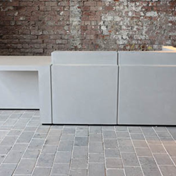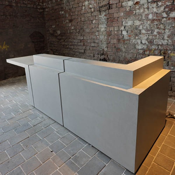 Set within a characterful, exposed-brick environment, the reception desk provides a striking yet seamless focal point. We used Ideal Work microcement - a high-quality, durable material that offers a sleek, modern finish while complementing the raw textures of the mill setting.