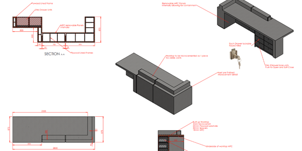 Our joinery team travelled to Italy to train with Ideal Work gaining hands-on experience in application techniques to ensure a flawless result. The smooth, continuous surface of the desk, with its clean lines and subtle texture gives it a refined and understated look. Microcement comes in a wide range of finishes and tones, which allowed us to tailor the desk’s appearance to complement the surrounding space perfectly.