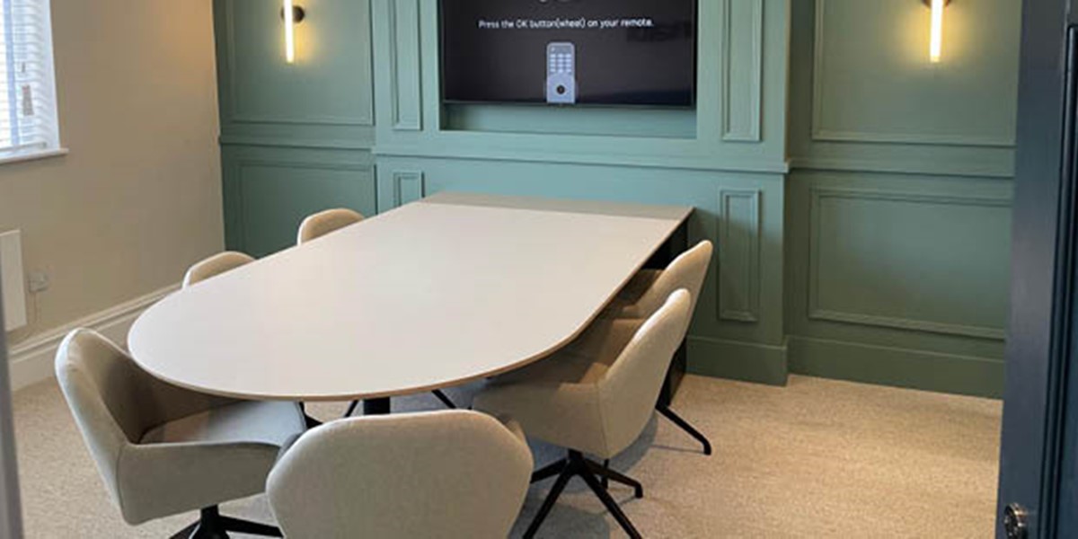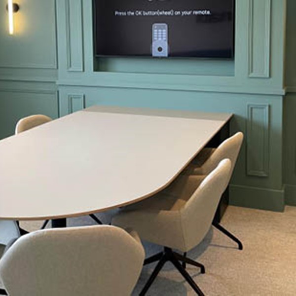 Built in our joinery workshop, it features fluted panelling, integrated shelving and a solid worktop - offering both practicality and style for informal meetings, social events, or daily coffee service.
