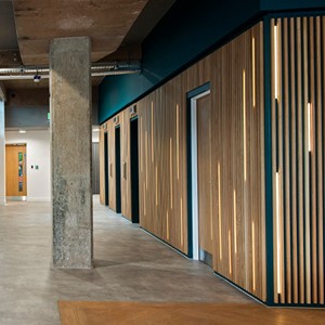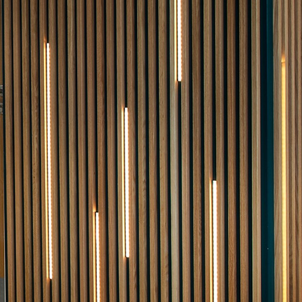 Each panel can be finished in a range of materials, such as timber veneer, laminate, metal or fabric. The integrated lighting is carefully diffused to cast an even, ambient glow, highlighting the texture and tone of the chosen finish. Wherever they are used, our back-lit panels add warmth, sophistication and visual interest to the space.