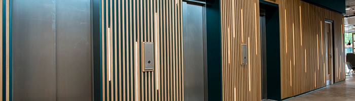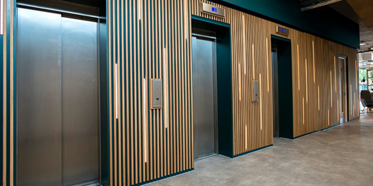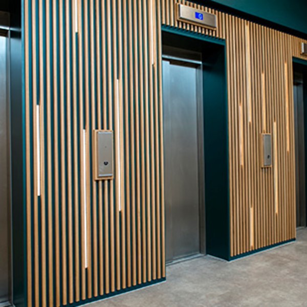 Our bespoke back-lit panels provide a visually striking and flexible design solution, ideal for enhancing a variety of interior spaces. In this project, the panels were installed around a lift to create a bold and contemporary focal point that draws the eye and adds a sense of depth.