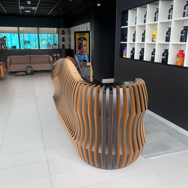 Whether you’re aiming for a minimalist look or a more intricate design, our bespoke parametric metallic reception desk offers the perfect balance of elegance and functionality, elevating your workspace with its architectural beauty.
