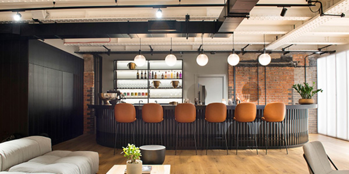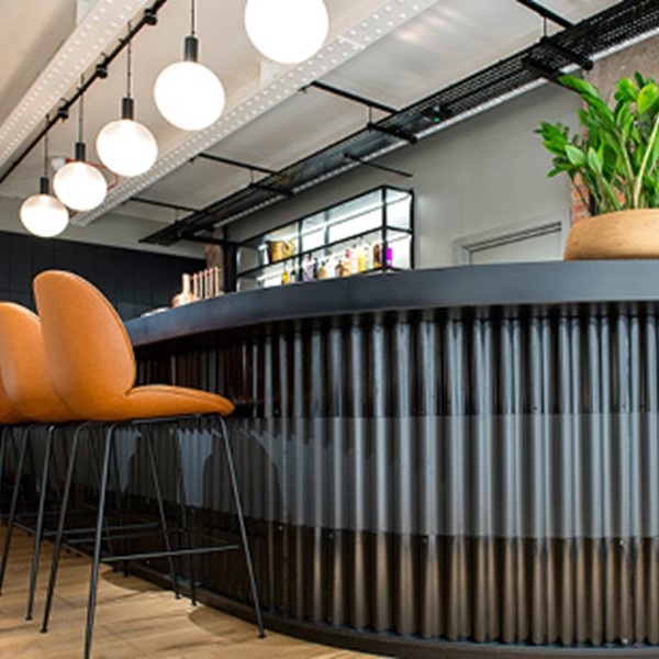 This curved bar was designed and manufactured for a breakout area in Bonded Warehouse, part of the iconic former Granada Studios in Manchester. Created to bring warmth and character to the industrial-style setting, the bar combines contemporary finishes with timeless detailing to suit the vibrant shared workspace.