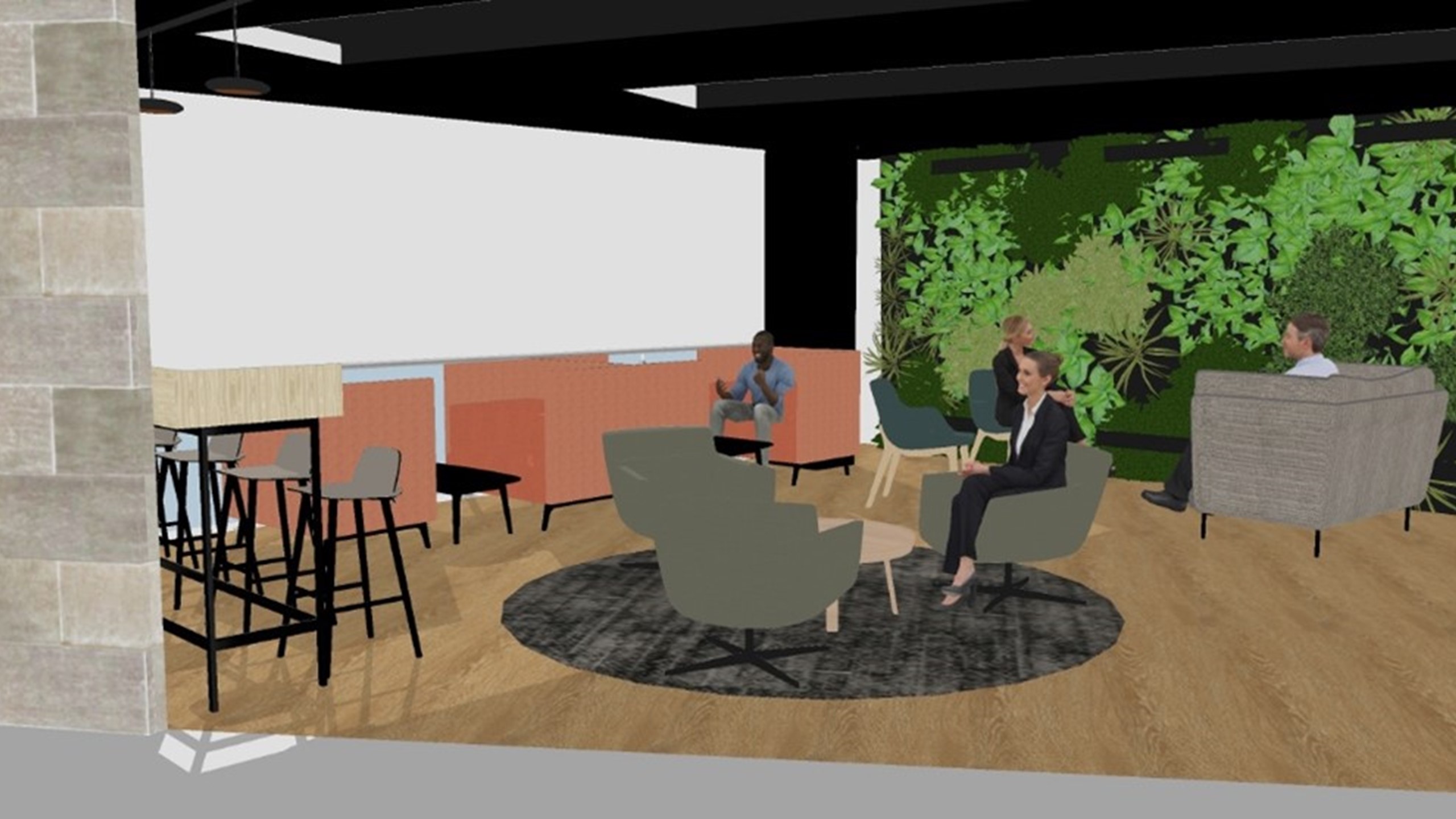 The original brief was a to design a scheme which incorporates furniture and finishes that compliment the design of the breakout area on the ground floor of the same building. Bruntwood wanted to create a variety of spaces to relax, encourage interaction & reinforce the idea of belonging to a community. Our team produced a concept, incorporating materials and loose furniture to provide a practical design with creativity at the forefront: