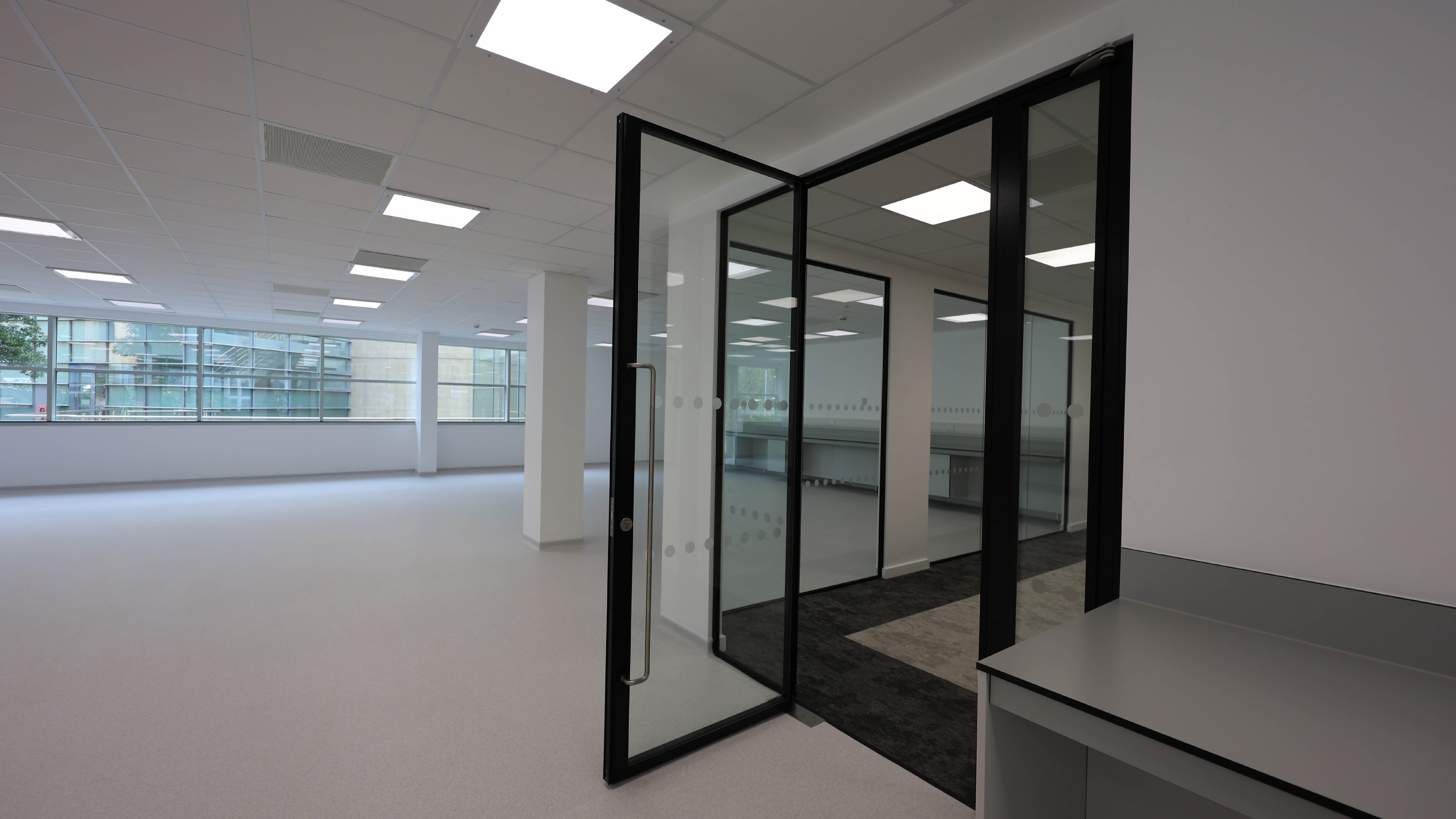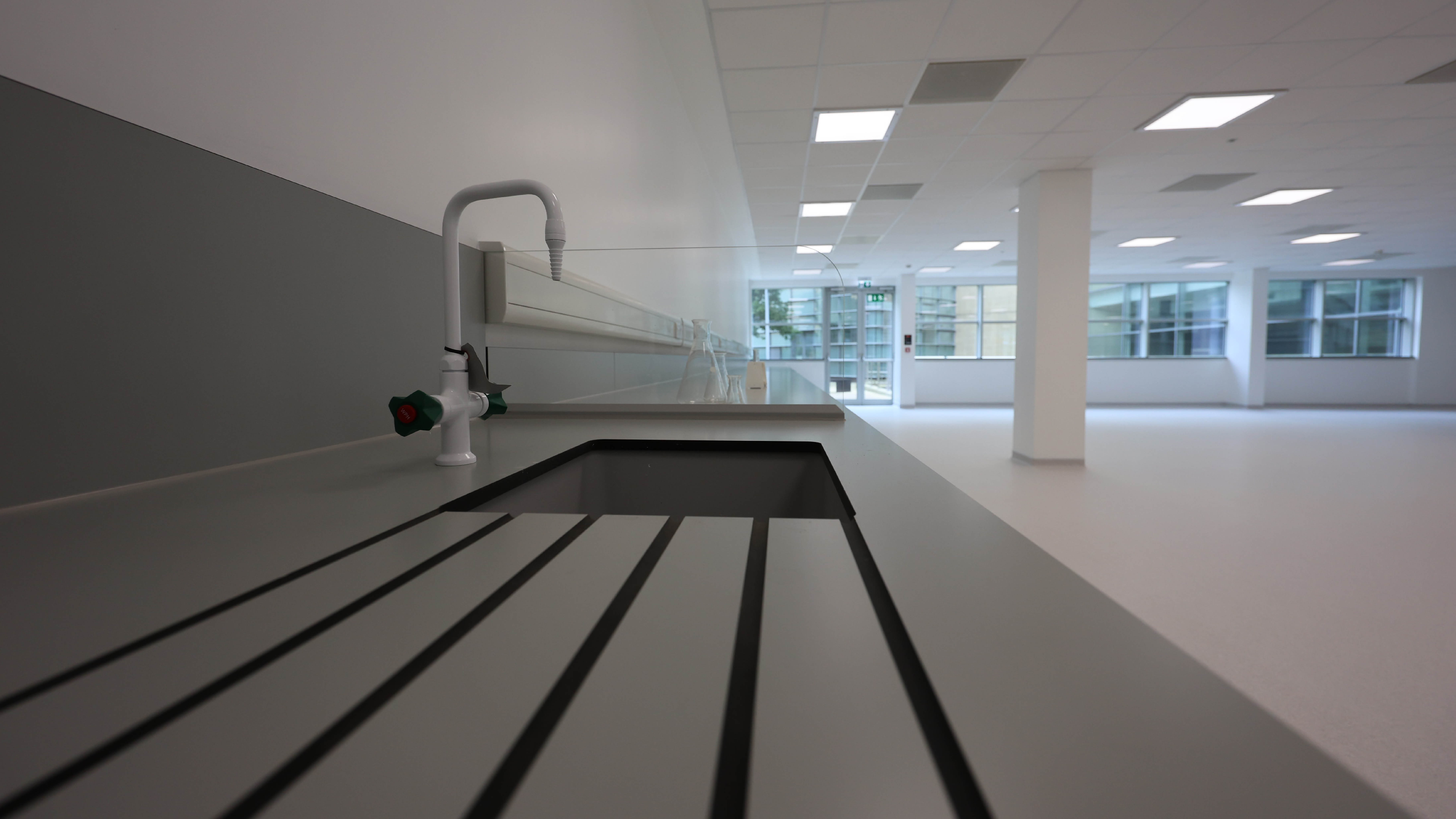 After completing the strip-out, the project scope included the installation of internal and external doors, carpets, various floor finishes, ceiling finishes, splashbacks, decoration and all FF&E including eye wash station, glove dispenser, goggle wipes dispensers and hand dryers.
