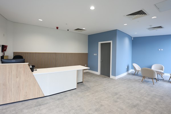 We designed a welcoming reception area and a canteen with catering facilities, creating an inviting and practical environment for employees and visitors. We also provided private 1-2-1 workspaces, dedicated areas to accommodate their annual training schemes, and a versatile town hall space for company-wide meetings and events.