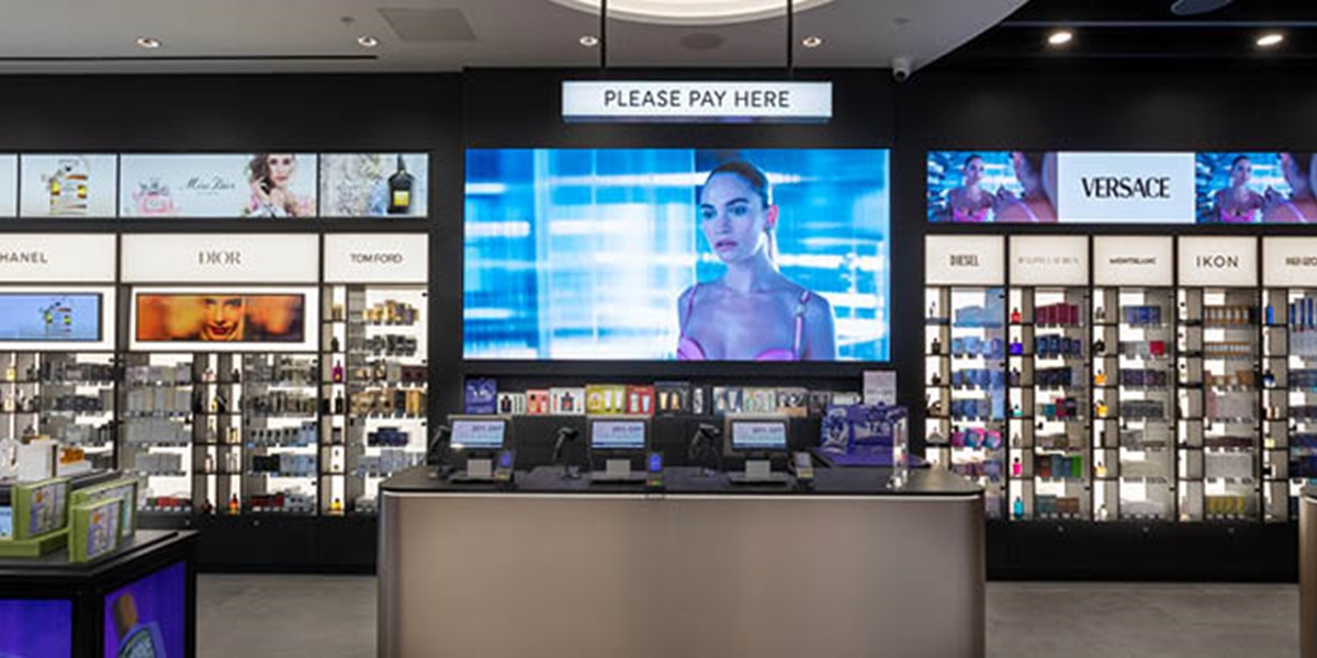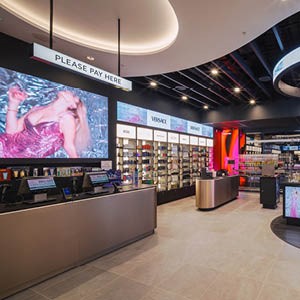 This bespoke cash desk was designed and manufactured for The Fragrance Shop’s flagship store in London, serving as a sleek and functional centrepiece within the retail environment. Built to withstand high footfall and daily use, the unit combines a durable solid surface countertop with a metallic laminate finish, creating a modern and sophisticated aesthetic.