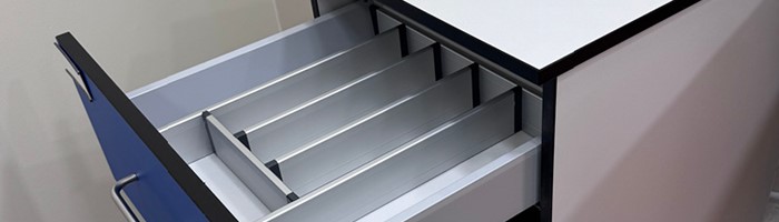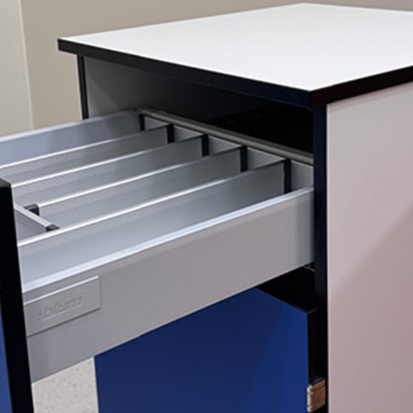 Manufactured to suit individual requirements, our caster units can be made using a range of high-performance finishes including moisture-resistant MFC and Trespa, offering both hygiene and durability in demanding settings. Drawers, shelves and internal layouts can be fully customised to suit specific equipment or storage needs.