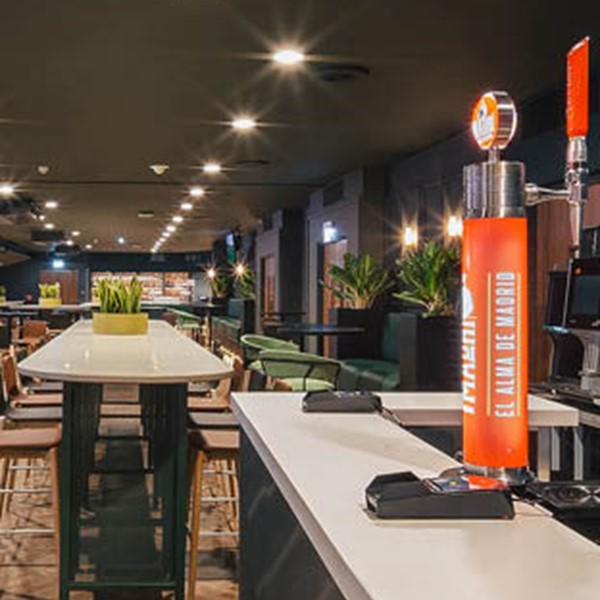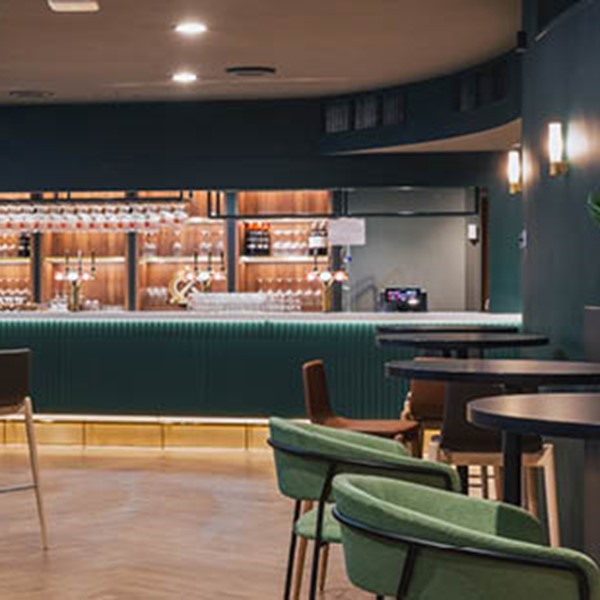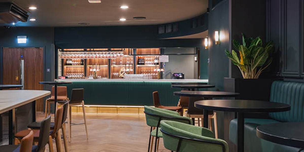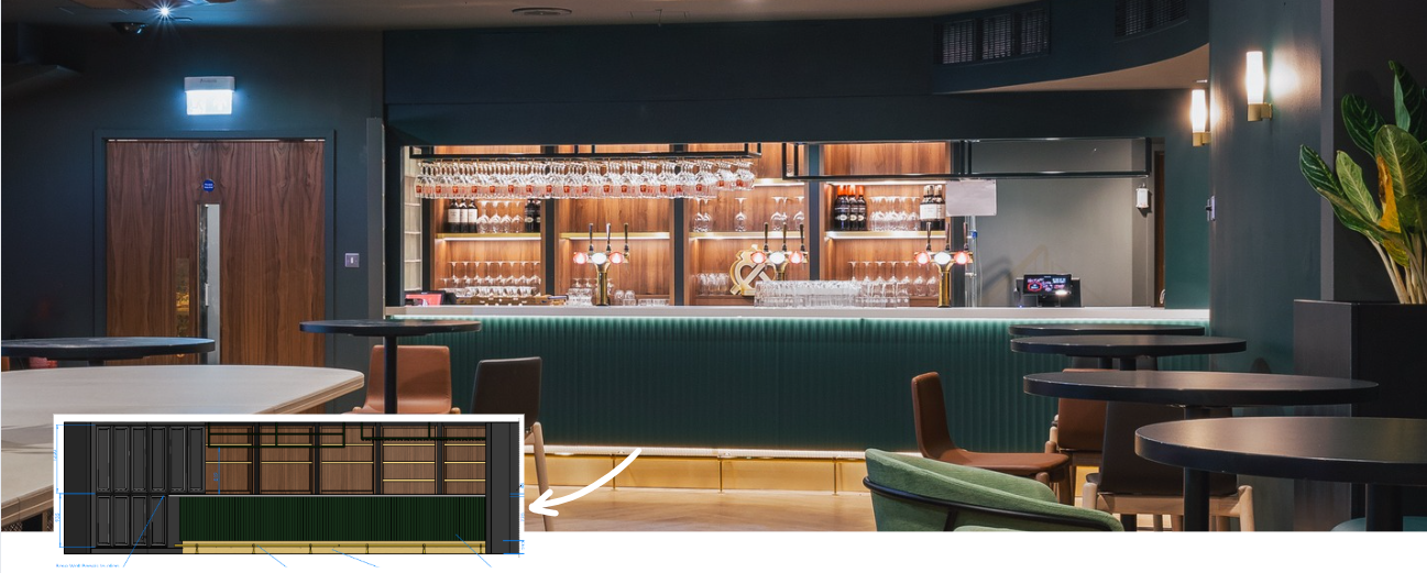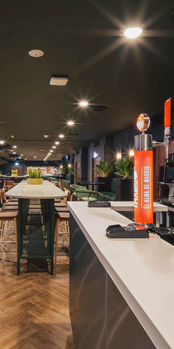 Combining durability with premium aesthetics, this bespoke bar features striking teal finishes that give the space a luxurious, high-end feel - perfectly suited to the exclusive atmosphere of matchday hospitality. The colour palette was carefully selected to complement the overall interior scheme, though it can be fully tailored to suit any brand, venue or design concept.