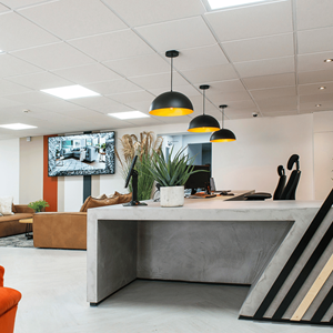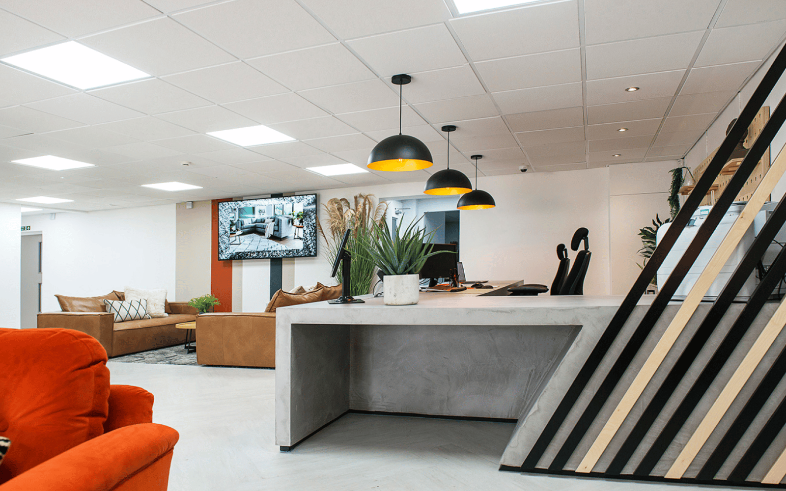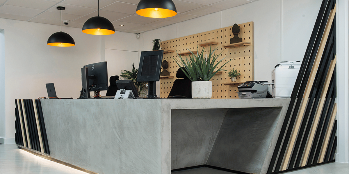 Designed to be the standout feature of any reception area, this bespoke industrial-style desk is made using durable Microcement for a bold, concrete-effect finish. DDA-compliant and built with functionality in mind, the desk brings a raw, monochromatic aesthetic that acts as a neutral canvas - perfect for evolving interiors and brand updates.
