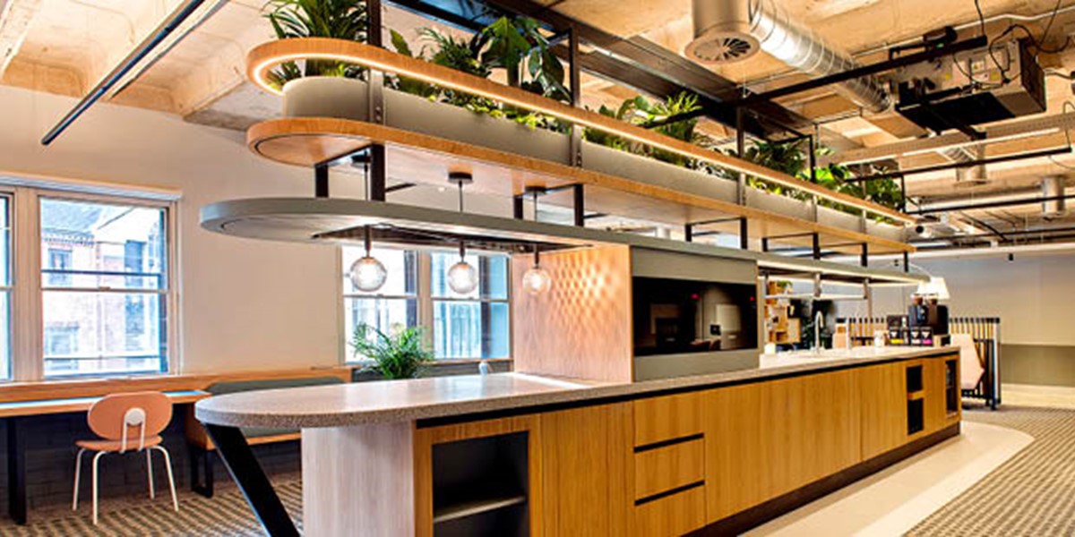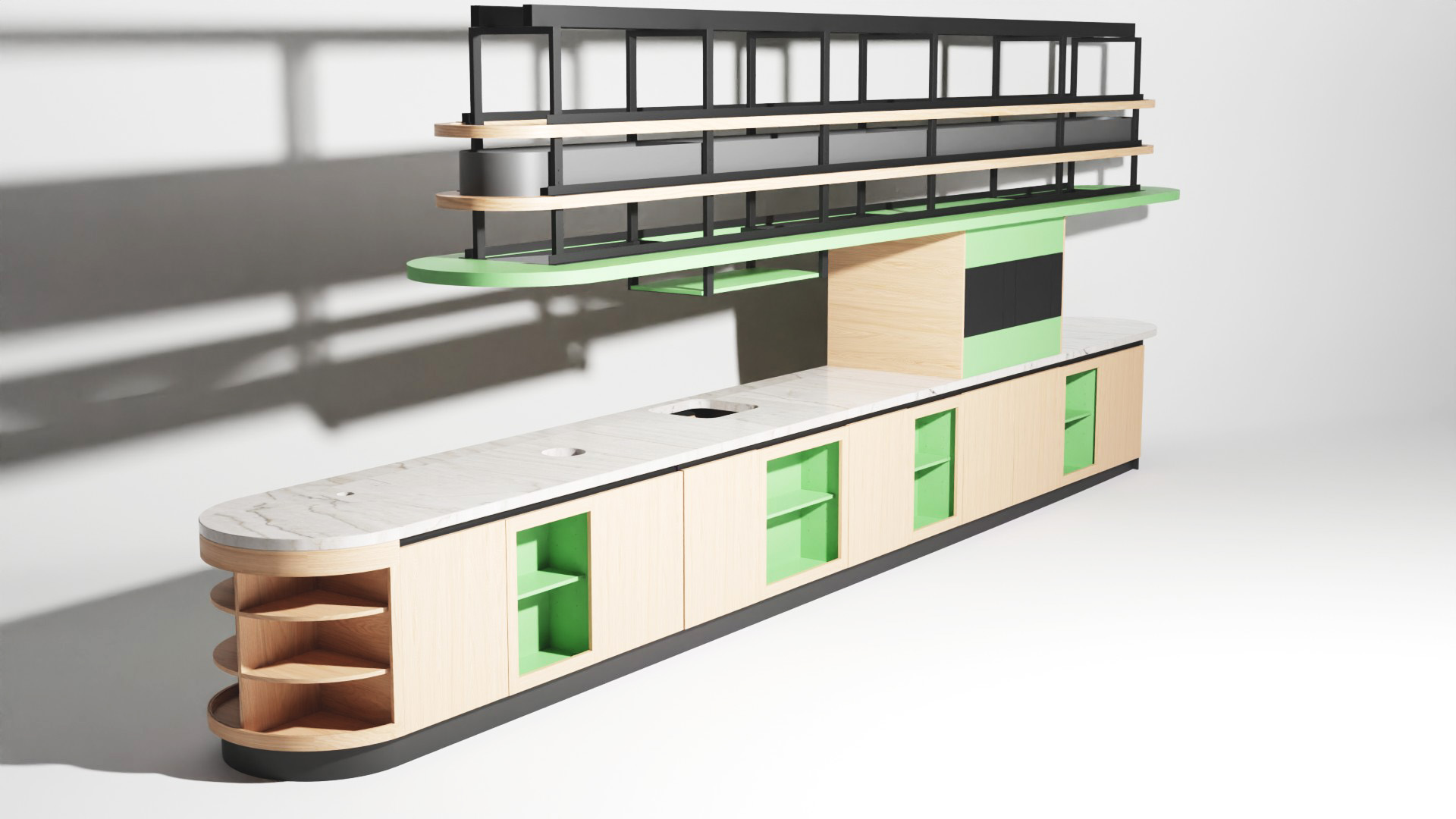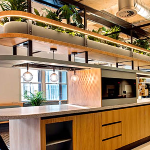 Ideal for collaborative offices, social hubs or breakout spaces, this feature kitchen can be tailored in any material, size or finish to complement your brand and environment.