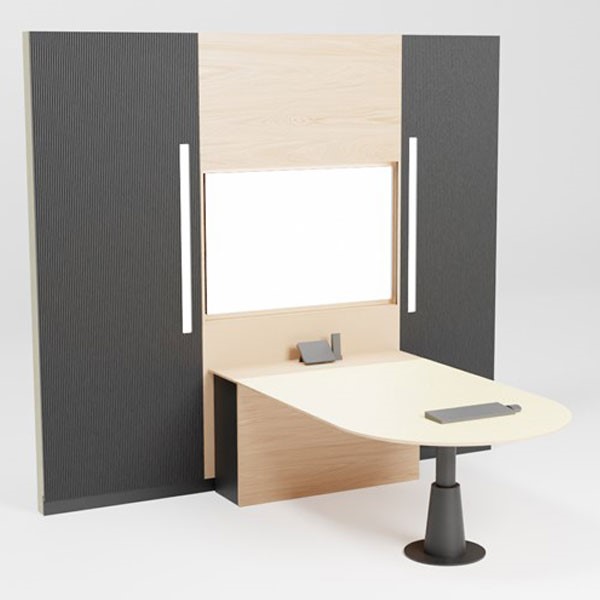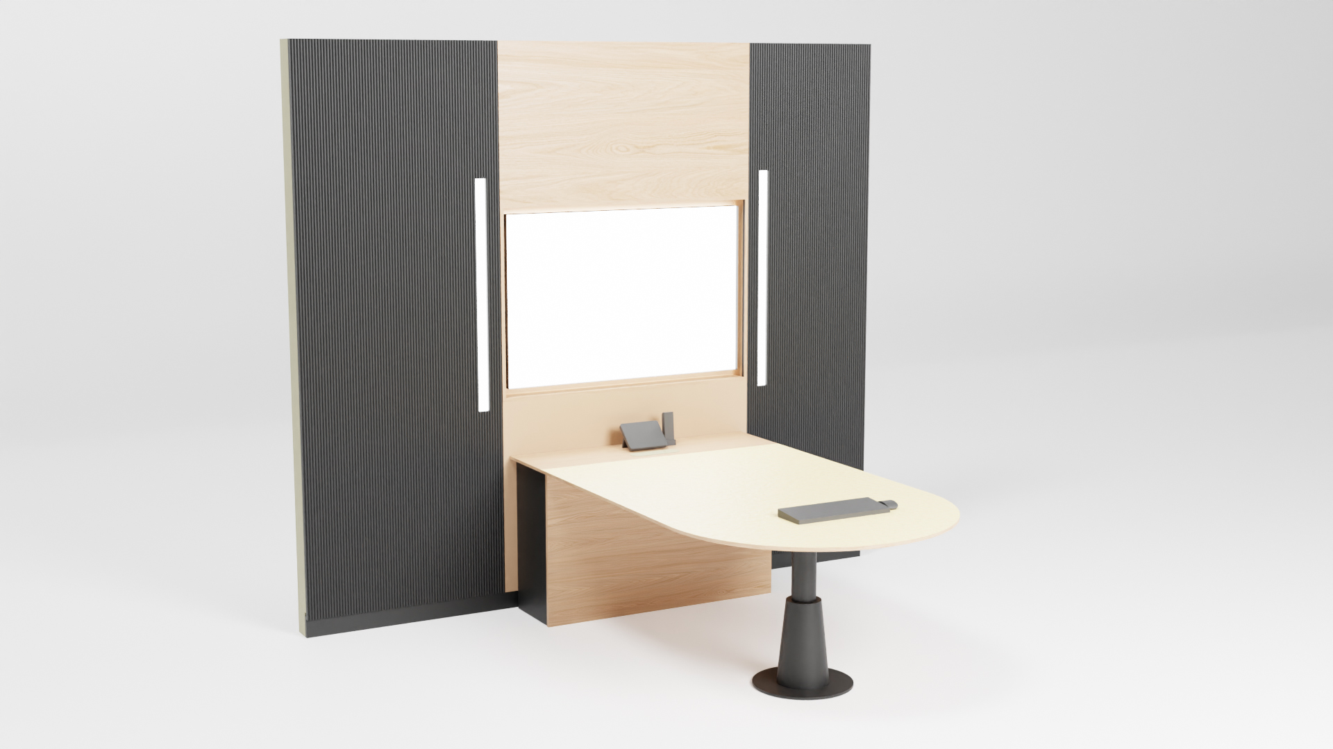 Built in our joinery workshop, it features fluted panelling, integrated shelving and a solid worktop - offering both practicality and style for informal meetings, social events, or daily coffee service.