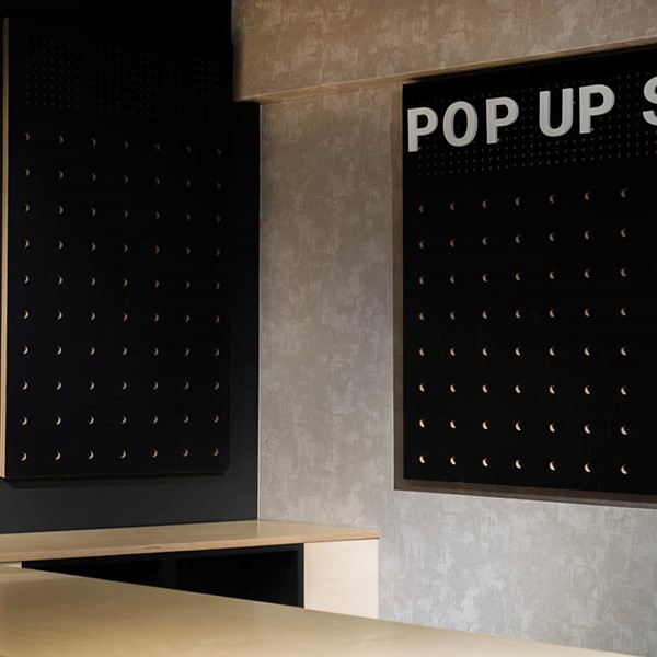 Created as part of a flexible retail space at Alderley Park, our bespoke pegboard panels were designed to support Bruntwood’s vision of a dynamic hub for local retailers. The panels provide a practical, stylish and fully adaptable way to display products and branding within a shared pop-up shop setting.