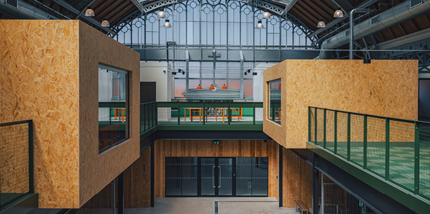 Each panel retains the natural character and aged texture of the original timber, bringing warmth, authenticity and visual depth to the refurbished space. This thoughtful reuse forms a key design feature, linking the building’s past with its new purpose.
