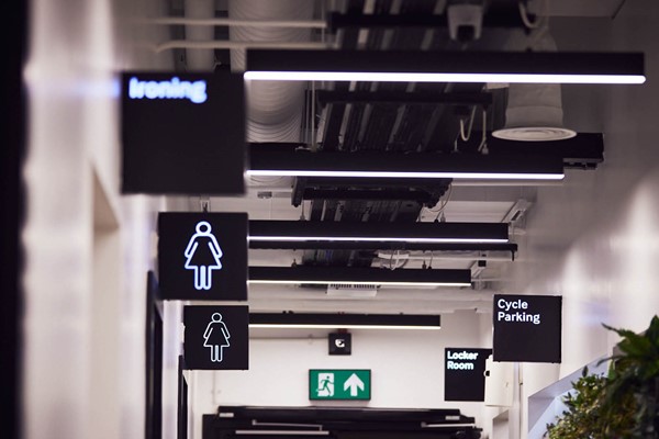 The scheme features secure parking for 125 bicycles and a bike pump repair station. The changing facilities have 17 individual high end shower rooms, a bespoke vanity area, a dedicated ironing station and over 180 ventilated storage lockers. Originally designed by Hamer Way Architects, bringing natural elements from the park’s rural setting inside, the space has been designed with a timeless monochrome palette and softened with hints of the parkland, using natural bark, moss and foliage textures to bring them to life. It is set to enhance on site amenity and encourage active travel at Alderley Park.