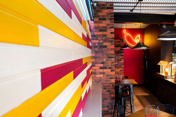 We were approached by Nick, the owner of Burrito Picante as he felt the design of his restaurant was lacking vitality and needed to be brought to life again. He wanted to remain true to his Mexican food and create a space that had an authentic-yet-unique look and feel. Amspec were appointed to fully redesign and refurbish the restaurant. Nick enlisted our help to create a strong, recognisable brand to carry throughout his additional franchises.